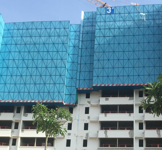 爬架網片是本世紀初快速發展起來的新型腳手架技術,對我國施工技術進步具有重要影響。它將高處作業變為低處作業,將懸空作業變為架體內部作業,具有顯著的低碳性,高科技含量和更經濟、更安全、更便捷等特點。