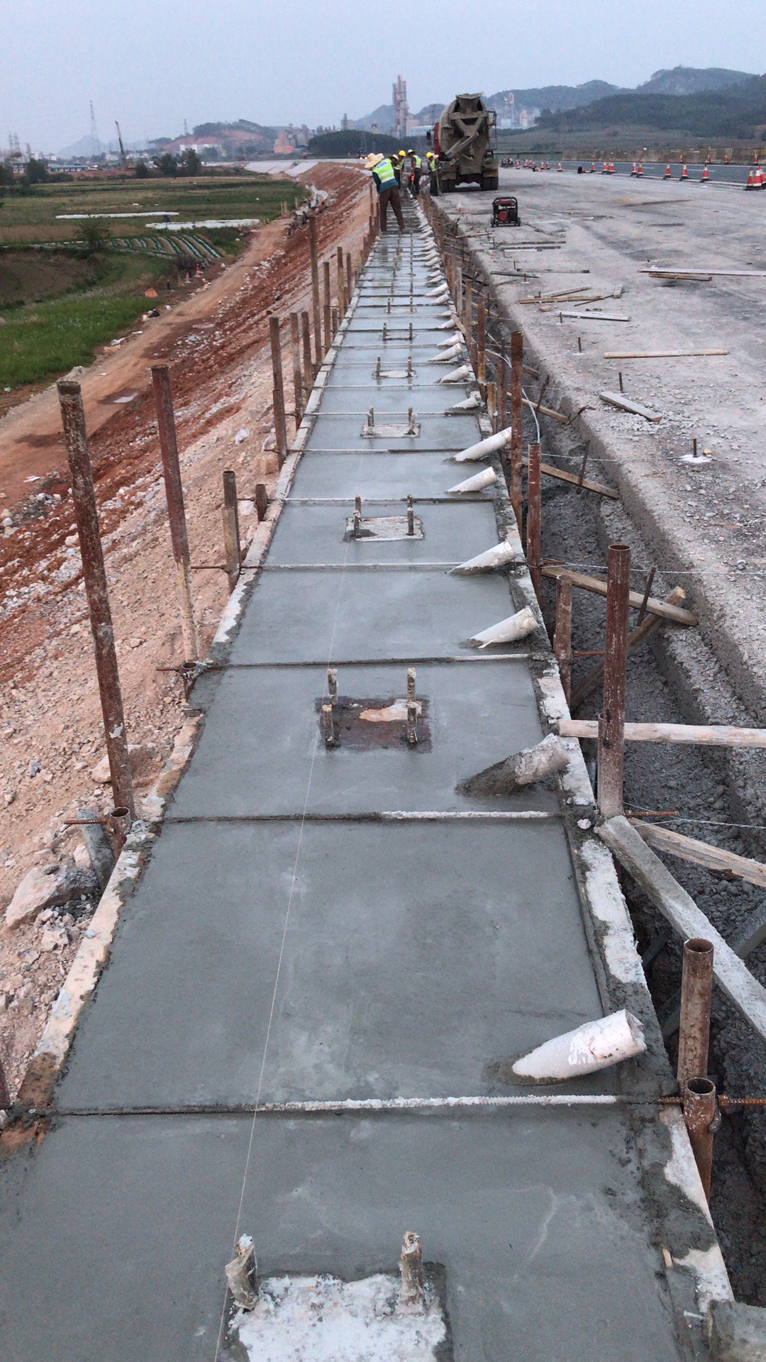 1.修筑于路基上的聲屏障基礎應與路基同步修建,不得因其施工而損壞、影響路基的穩固與安全。聲屏障的基礎施工宜在路基本體成型后、軌道鋪設及電纜槽施工前;施工前應查清路基上各類管線的位置;依據聲屏障基礎尺寸及其在路肩的位置切割開槽,切割開槽時嚴禁破壞各類管線。
