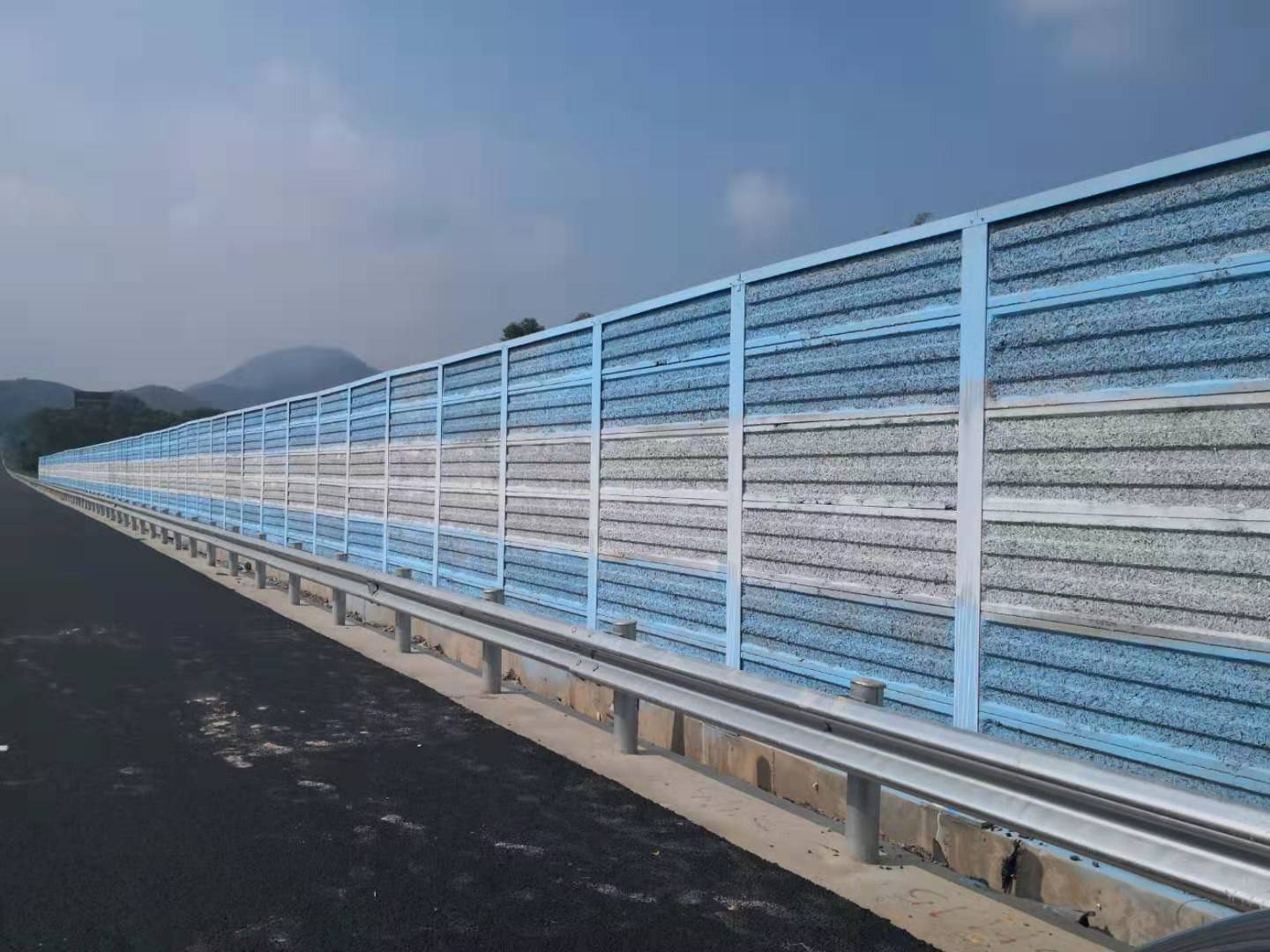 (11)耐用:產品設計已充分地考慮了道路的風載、交通車輛的撞擊安全和全氣假的露天防腐。產品采用鋁合金卷板、鍍鋅卷板、玻璃棉、H鋼立柱表面鍍鋅處理。在質保期內不腐蝕、不變型、吸聲、隔聲效果不降低。