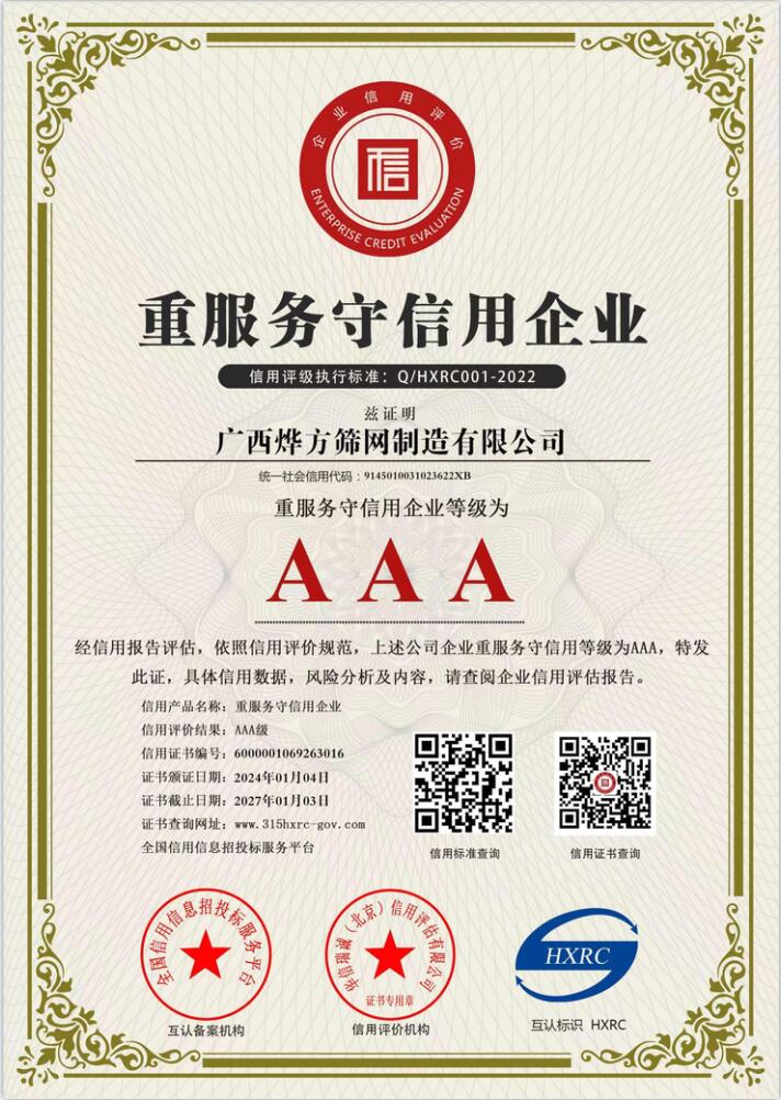 111 廣西燁方篩網制造有限公司-重服務守信用企業證書
